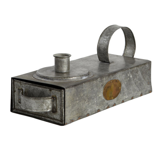 Hauska kynttilänjalka jonka laatikossa voit säilyttää kynttilät ja tulitikut tai sytkärin. Peltiä Pituus 24cm leveys...