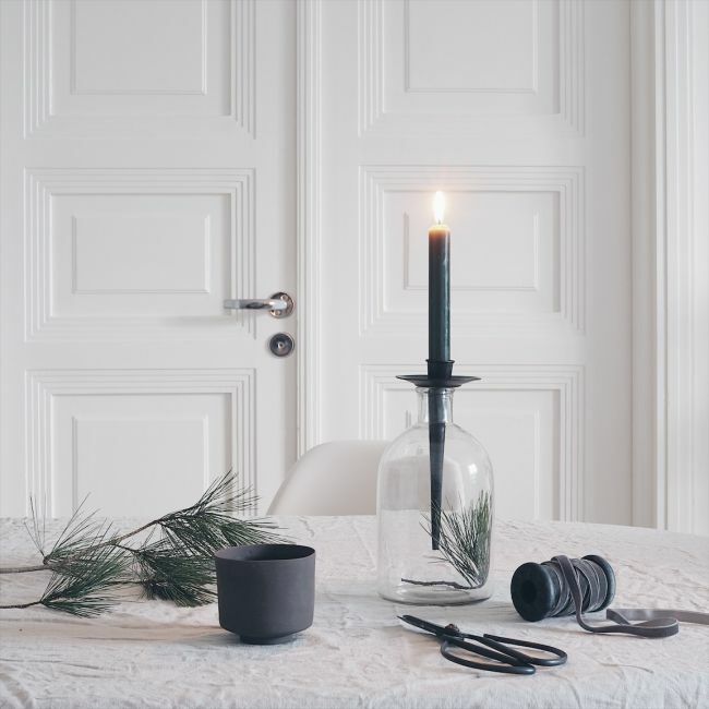 Tukeva viinipulloon tai muuhun kapeasuiseen pulloon kiinnitettävä kynttilänjalka - mustanväristä metallia. Materiaali:metalli Koko: 8cm. kork 18cm...