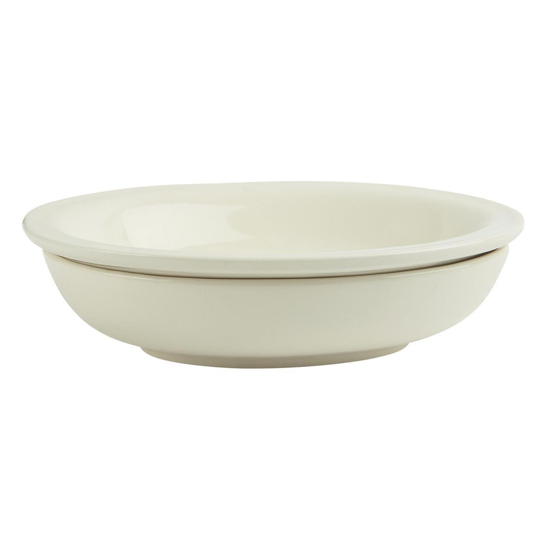 Kaksiosainen keraaminen saippua-alusta. Päällimmäisessä osassa on reiät, joiden kautta vesi pääsee valumaan alla olevaan astiaan...