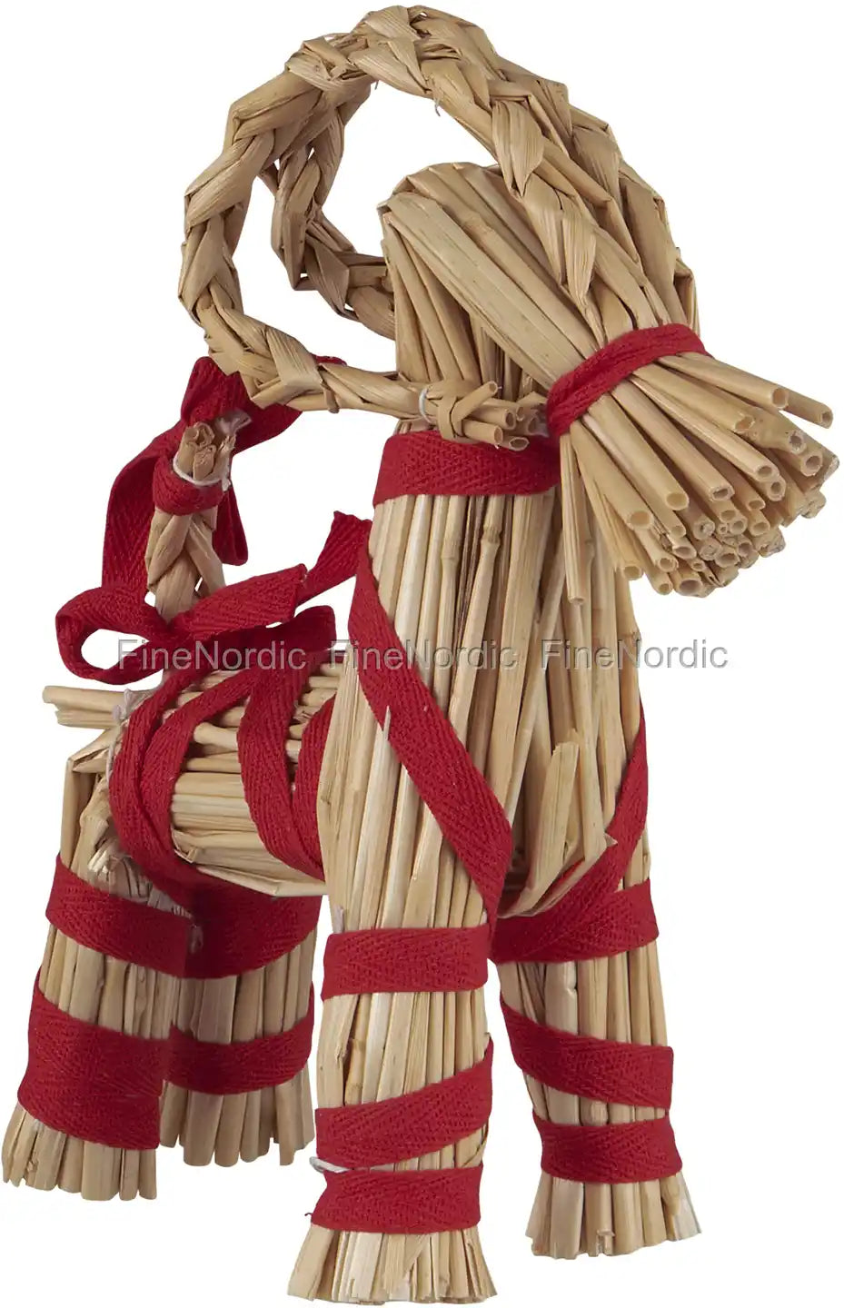 Ib Laursen Stillenat olkipukki 21,5 cm, punainen koristenauha. Materiaali: olki, puuvilla.