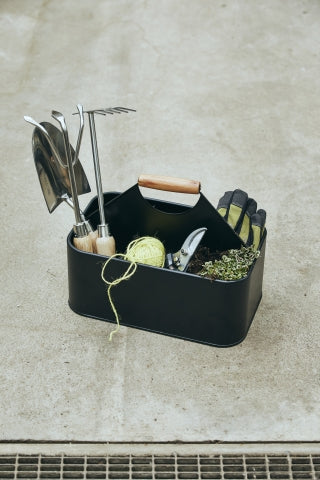 Nordalin mattamusta metallinen säilytys laatikko puu kahvalla. - Korkeus 23 cm - Leveys 30 cm -...