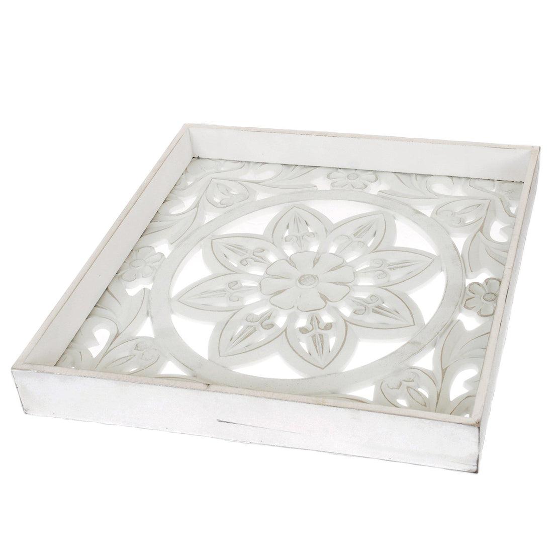 Tyylikäs tarjotin, jossa on lasipinta - musta ja valkoinen - 45 x 45 x 6...