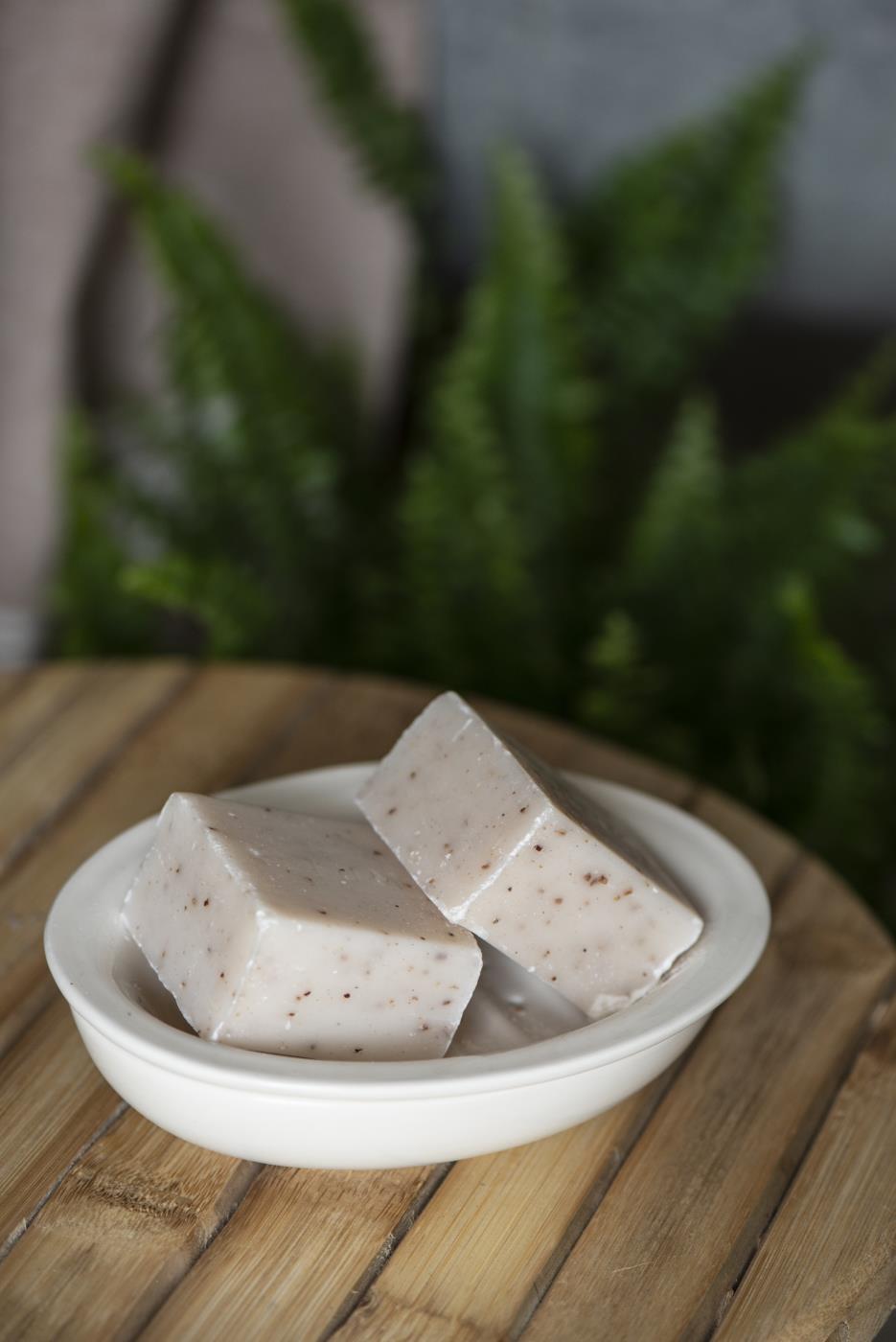 Päällimmäisessä osassa on reiät, joiden kautta vesi pääsee valumaan alla olevaan astiaan ja saippuaa kuivaa käytön välissä.