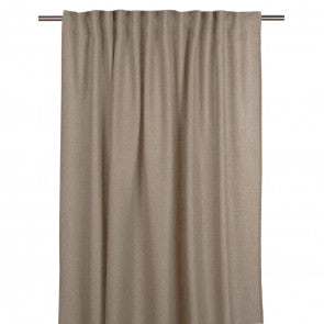 Kauniisti laskeutuva pellavamainen verho monitoiminauhalla.