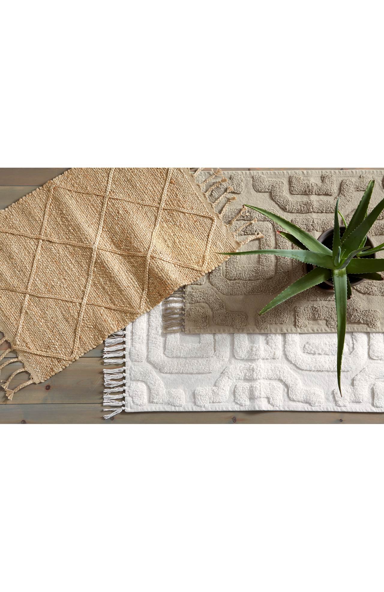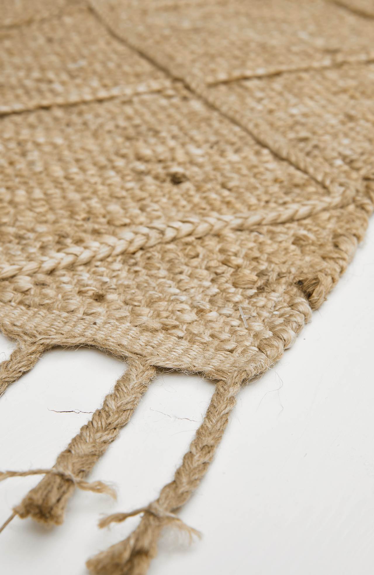 Fondacon upea luonnonläheinen juuttimatto sopii huoneeseen kuin huoneeseen. Siinä on samasta materiaalista tehty ruudukko hieman koholla ja päissä tyylikkäät paksut hapsut.