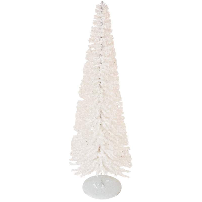 Ihana kimalteleva valkoinen pöytäkuusi.