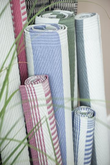 Matto sopii täydellisesti kesämökille, kylpyhuoneeseen, eteiseen tai luomaan viihtyisää tunnelmaa terassille ja parvekkeelle. Mattoja voidaan käyttää myös ulkona, mutta vältä suoraan auringonpaisteeseen laittamista koska matot ovat valmistettu 100 % kierrätetystä polypropeenista. Matto tulee pestä vain käsin, ja voit huuhdella sen pelkällä vedellä.