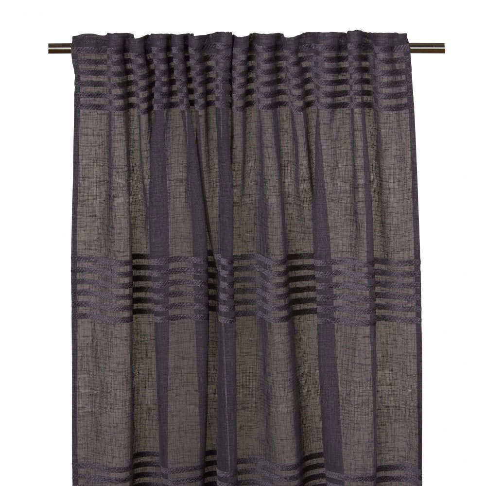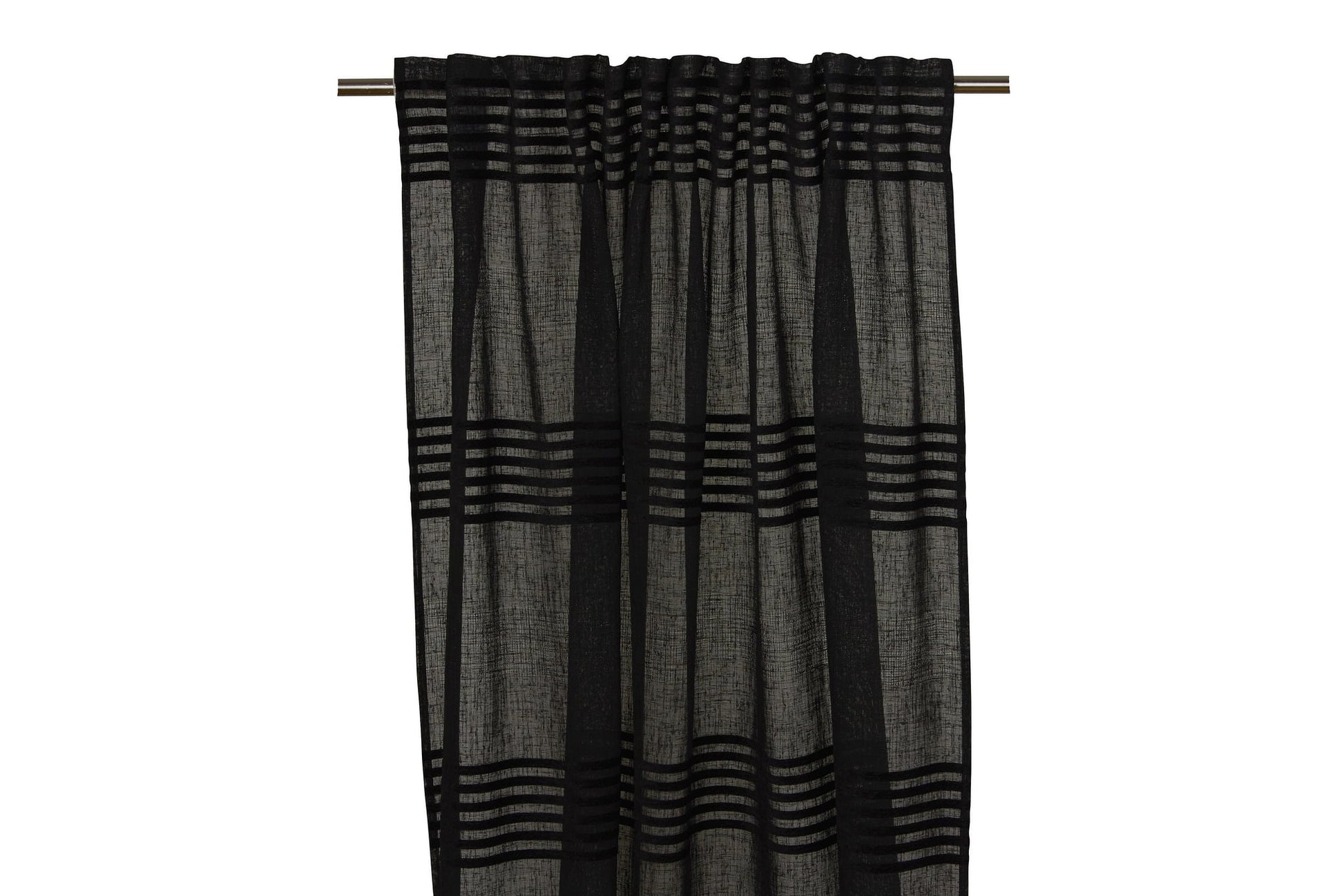 Yksivärinen läpikuultava sivuverho jossa on samettiraitoja. Verhossa monitoimi verhonauha, jota voit käyttää monella eri tavalla. Verhonauha toimii aaltonauhana verhotankoon pujotettuna, ripustetaan verhonipsuilla, voidaan ripustetaan pienillä verhokoukuilla tai sormikoukuilla tankoon,