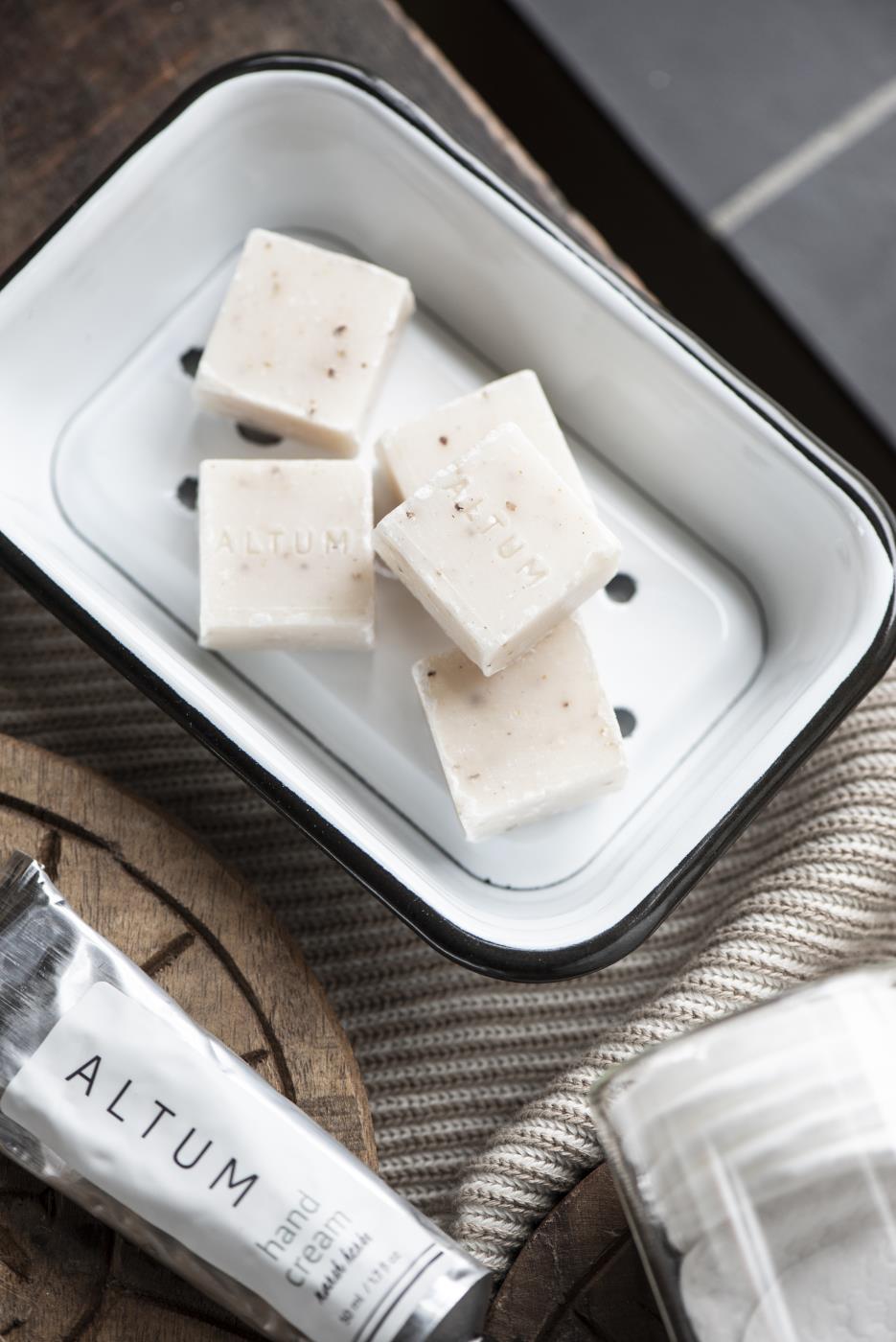 Tiiviin pohjaosan päällä on reiitetty osa. Näin vesi pääsee läpi tiiviisiin pohjaosaan ja saippua pysyy kuivempana. Ylimäräinen vesi on helppo poistaa pohjaosan kupista.