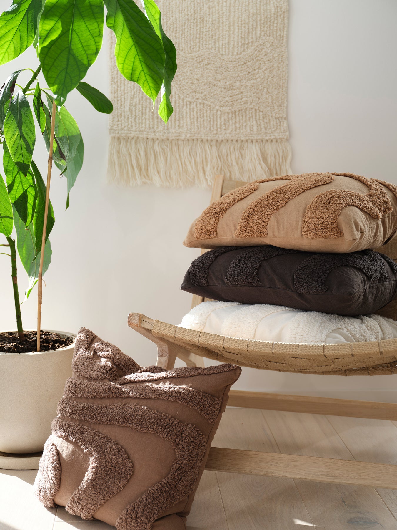 Tyynynpäällinen pehmeää puuvillaa. Tuftattu kuvio. Vetoketju alareunassa.