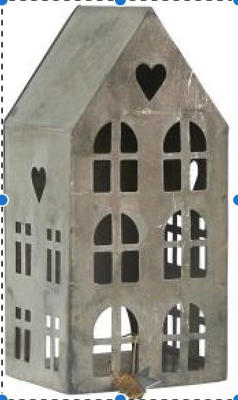 Talo metallia. syvyys 7 cm, leveys 8 cm, korkeus 17,5 c,