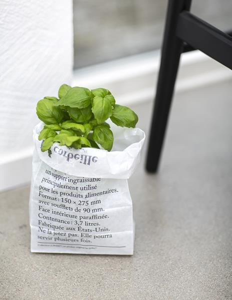 Käytännöllinen vahapaperipussi, joka sopii täydellisesti kylpyhuoneeseen, keittiöön tai työpöydälle kukkaruukkuun, leipäkoriin tai tyylikkääksi säilytysratkaisuksi.
